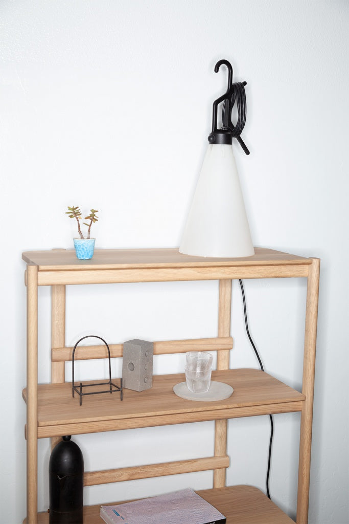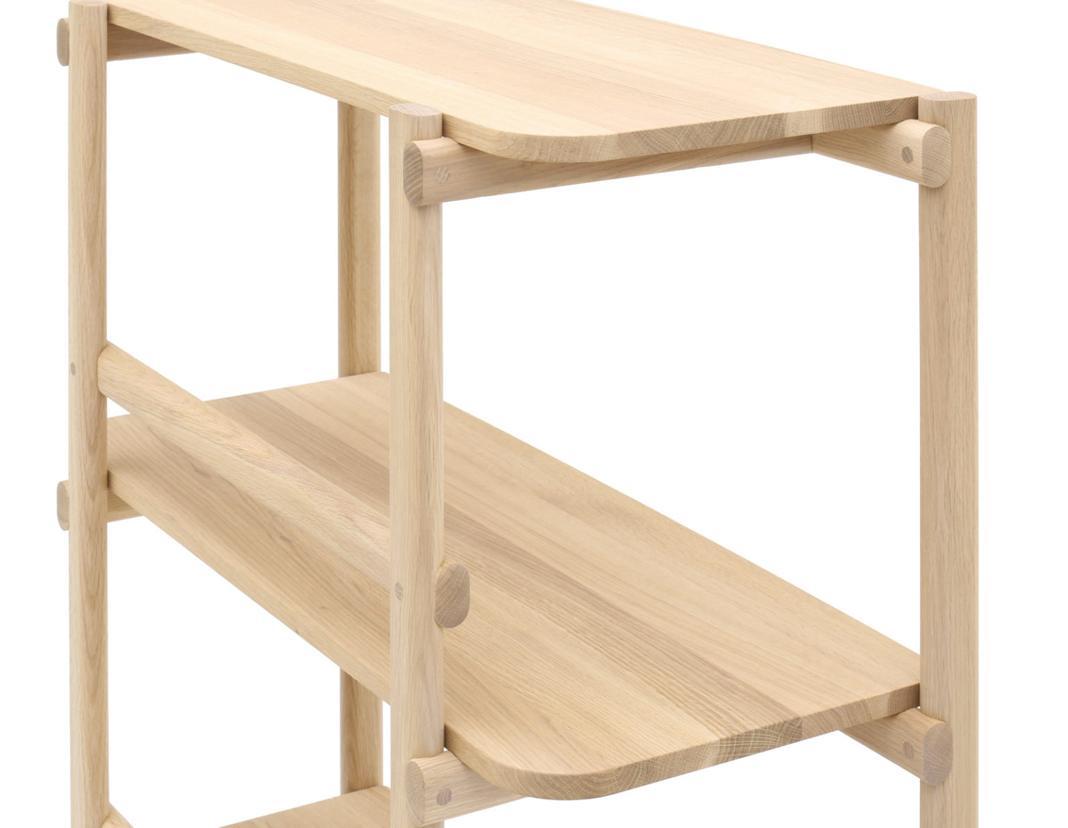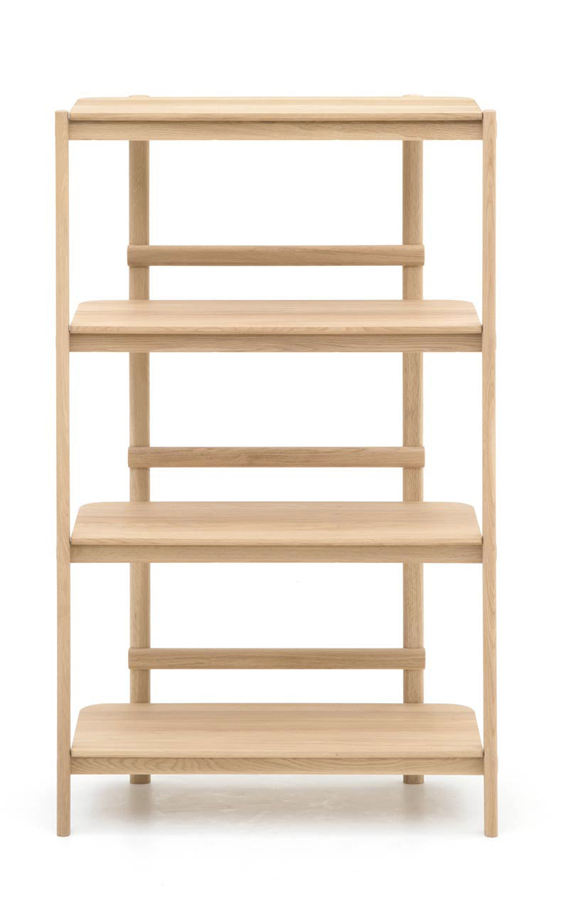 本や雑誌、CD やレコードなどをあまり持たなくなったデジタル時代、アーカイブシェルフは個人が収集したアイテムを長く大事に保管するためのプラットフォームです。2種類のサイズ展開で、私たちが日々の生活で使用し、眺めて思い出したいものを収納、ディスプレイするための家具です。カリモクの熟練の職人の手によって、国産のナラ材で作った細い部材と棚板で組み立てられています。美しく仕上げられたディテール、上品な接合部、柔らかな曲線でアーカイブシェルフは、どの部屋に置いても中心的な存在になるはずです。