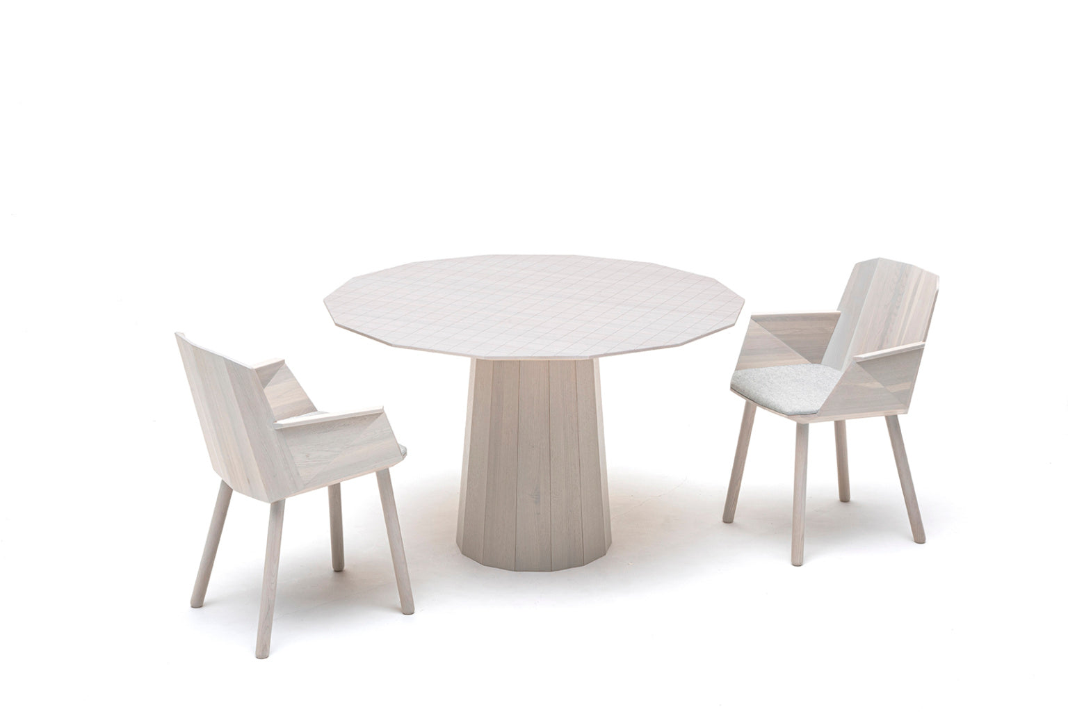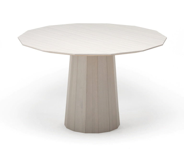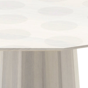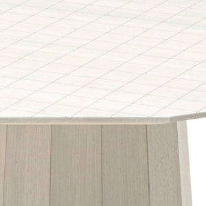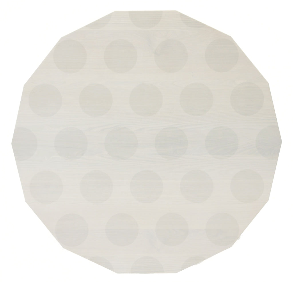 特徴的な樽形状のベースを持つ14角形のこのテーブルは、最新鋭の技術を用いて半透明の柄がプリントされており、伝統的な工芸技術にコンテンポラリーなデザインを重ねています。