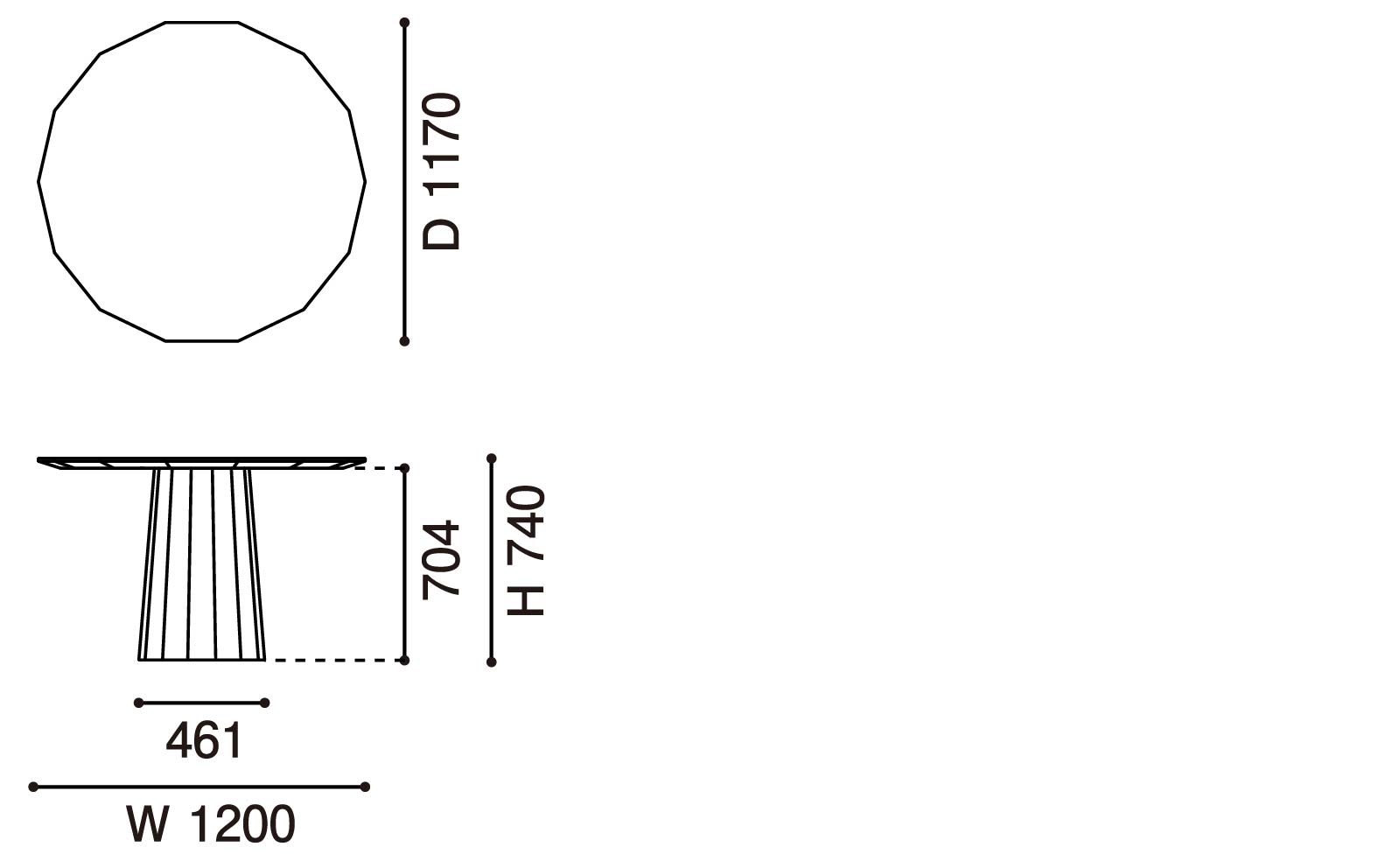 天板は2~4 人向けの Colour Wood Dining 95 と4~6 人向けの Colour Wood Dining 120 の2サイズの展開です。