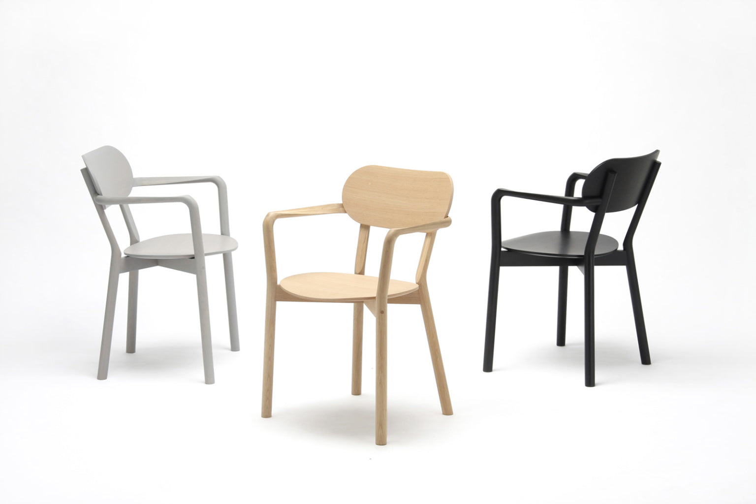 Castor Chairと同様、日本のナラ材と成型合板が用いられていて、フレームカラーも同じくナチュラル、ブラック、グレーの3色展開です。