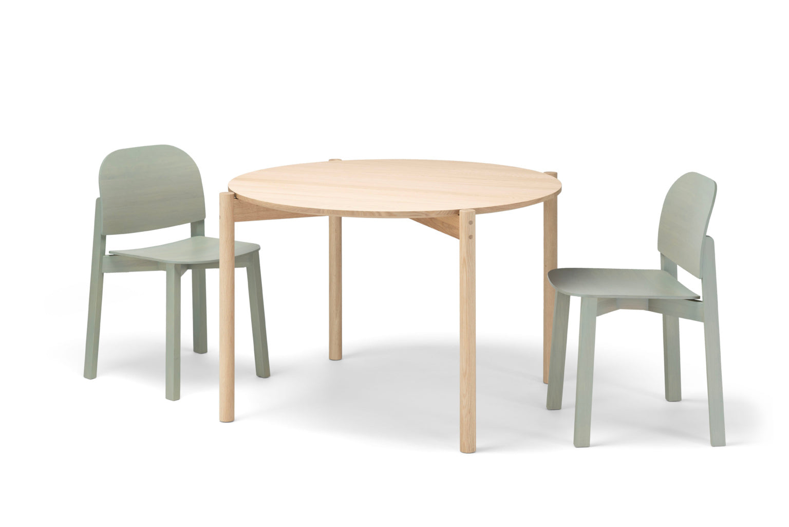 キャスト―ルテーブルラウンドは、キャスト―ルテーブルの最新作です。キャスト―ルテーブルはCastorシリーズのひとつで、サスティナブルな方法で調達された国産ナラ材を使用した日常に欠かせないアイテムです。長方形と円形、さまざまなサイズがあり、幅広いインテリアや用途に対応します。このテーブルの最大の特徴は天板を縁取る脚のディテールです。このデザインはテーブルの個性を際立たせるだけでなく、配線を容易にします。