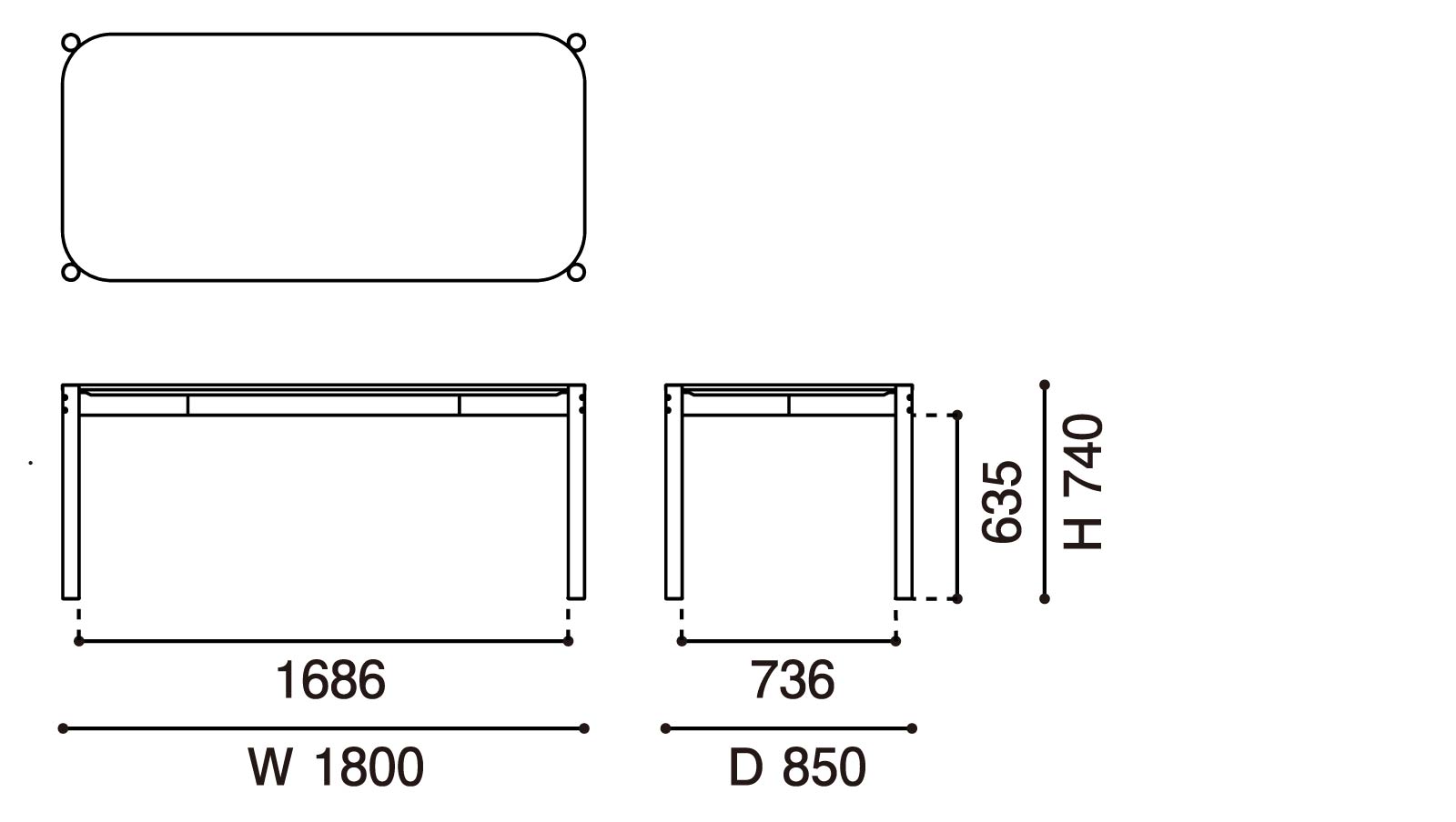MATERIAL: 主材 : ナラ / 天板 : ナラ突板貼りフラッシュ構造 (芯材 : ハニカム) / 脚部: ナラ