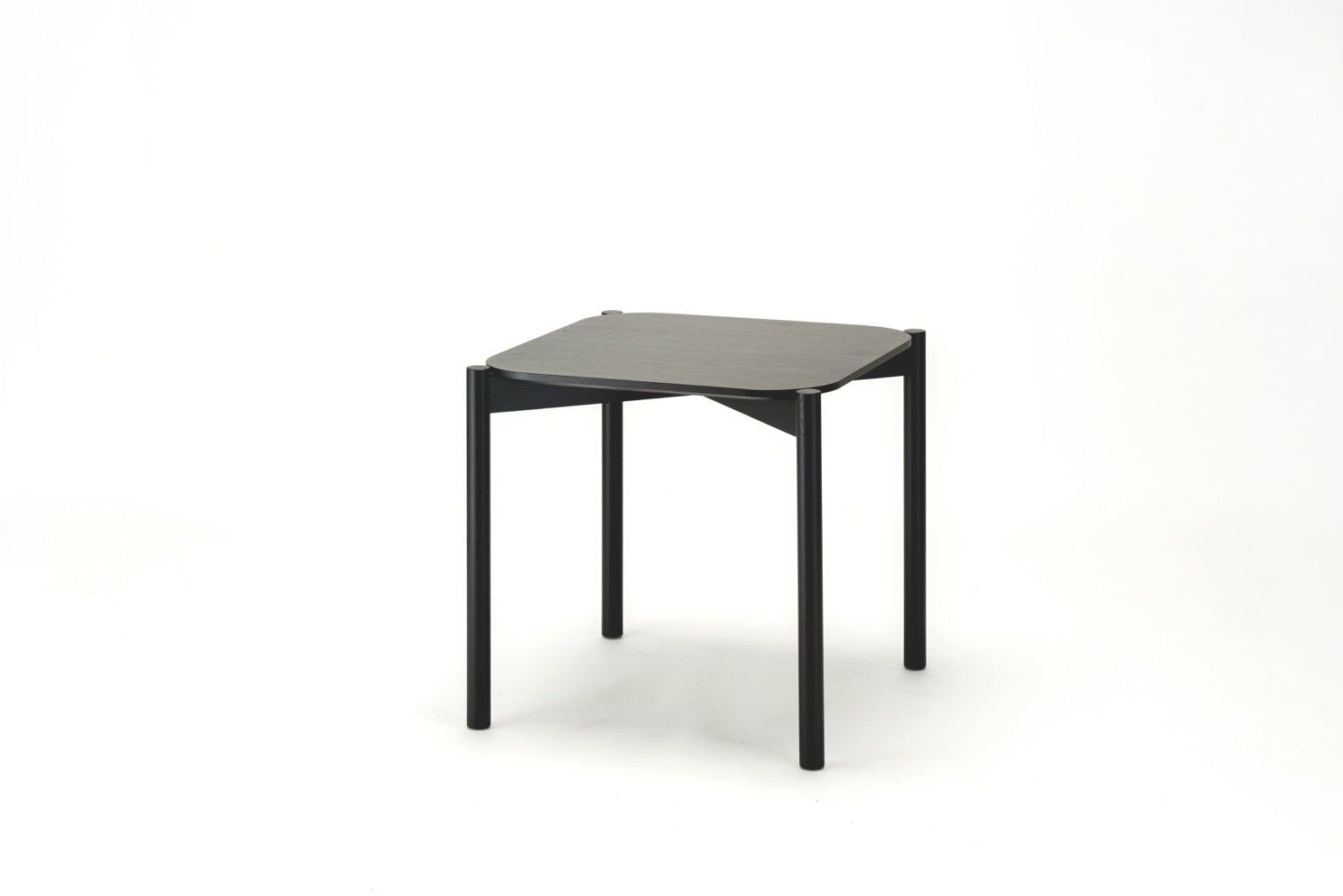 モジュラー寸法により、それぞれを組み合わせて様々な構成で並べることが可能で、天板の四隅が丸みを帯びていて、それを囲む形で精巧に配置された円柱状の脚が、美しいパターンを形成します。またそれによって容易に配線も可能です。