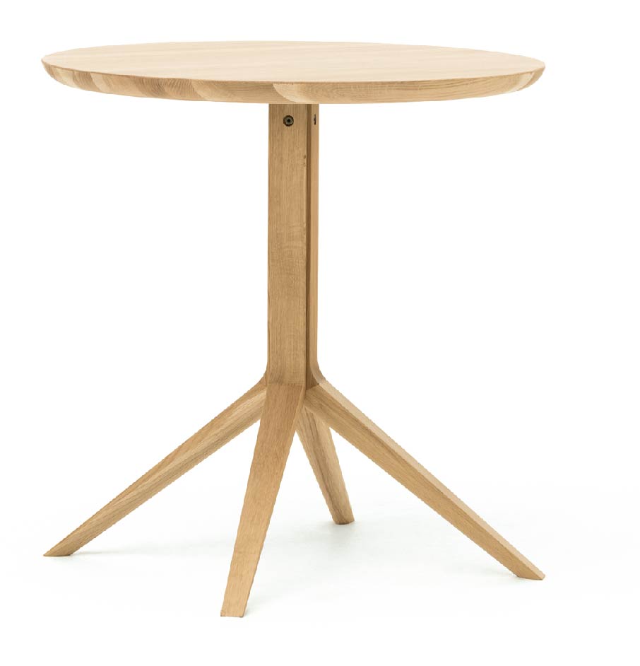 国産ナラ材を使用しており、天板と脚部は、スチールパーツで固定されています。バー、ダイニング、ローの3種類の高さと2種類のカラー展開です。コンパクトなサイズで、カフェやレストラン、オフィスのミーティングスペース、家の小さなリビングスペースなどにぴったりです。