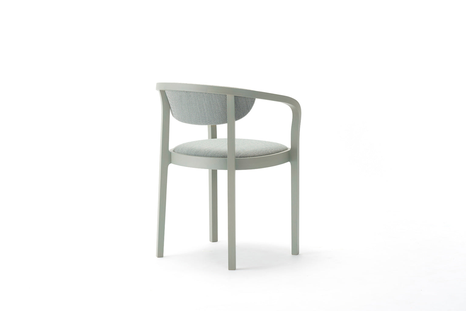 穏やかで明快なラインは、このチェアの存在を際立たせると同時に、数が多くても空間に溶け込みやすいものにしています。