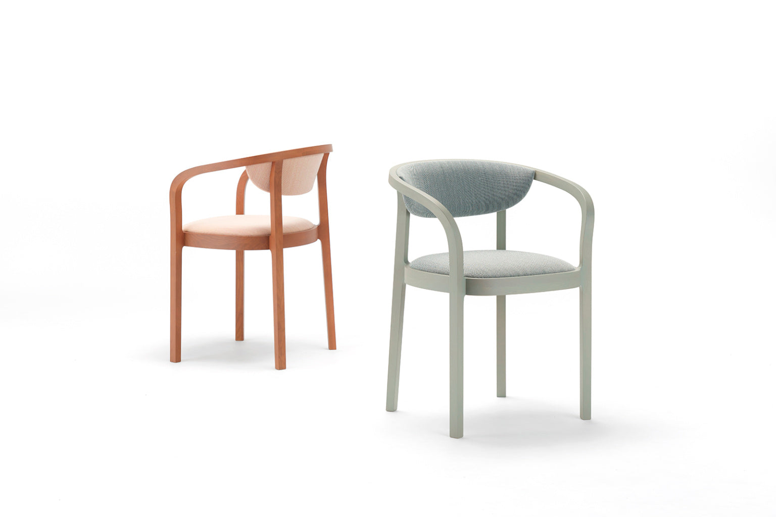 Chesa Chairは、クラシックな優美さと現代的なディテールがバランスよく融合したコンパクトなミーティング&ダイニングチェアです。前脚から背もたれへと続く曲線が快適なパーソナルスペースを作り出し、また斜めに座ることで、隣に座る相手と向かい合うことも可能です。