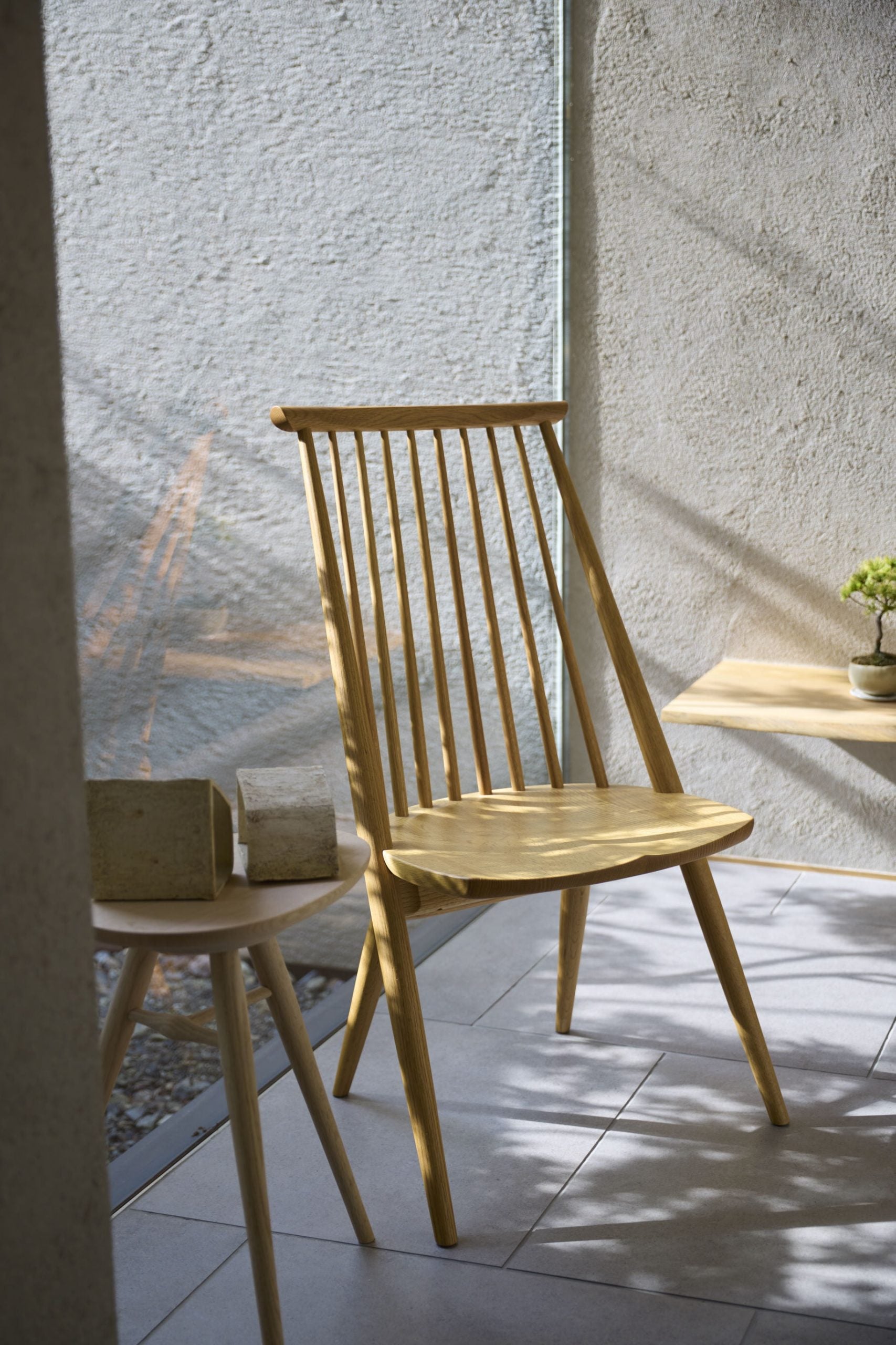 シビルチェアはKASHIWA が生産するサイドチェアの中で抜群の座り心地を実現しています。和・洋どんな空間にも溶け込む懐の深いデザインで、まさに日本が世界に誇れる木製椅子のひとつ。CIVIL チェアの特徴である背から脚先まで一本で通した丸脚には、シンプルながら高度な匠の技が盛り込まれており、座部分の座ぐり加工が座ったときのフィット感をあげています。限りなくぜい肉を削ぎ落としたかのような、CIVIL チェアの存在感は、人間が主役である様々な空間の中で、華美にならず、過剰にならないことを信条としています。